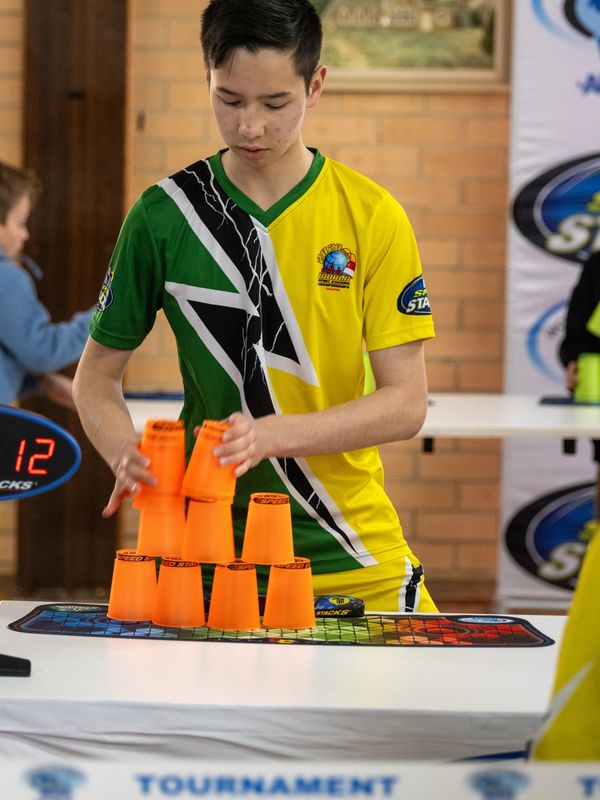 Justin Roger competed at his first tournament, The Australian National Sport Stacking Championships 2022! Justin has only been stacking for a short period of time, but his progression has been amazing! Justin really impressed at Nationals and with his continued dedication, and rapid improvement, he was offered a spot on The Australian Lightning!